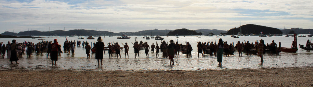 Alarms set for 3.30am, we made our way to the upper Treaty grounds before dawn to attend the formal service at 5am. Iwi leaders, dignitaries, political members and whānau gathered in the hundreds to Te Whare Rūnanga Marae and the grounds, overlooking Te Moana Pikopiko-i-Whiti, the inner bay of islands. Together, we remembered the promises that were made 185 years ago and the work that is still required to fulfil them today.